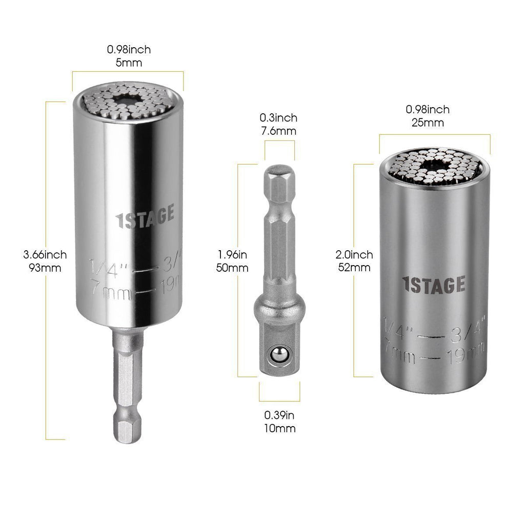 1Stage Universal Socket wrench set is a must-have multi wrench tool that can replace a tool box full of tools!